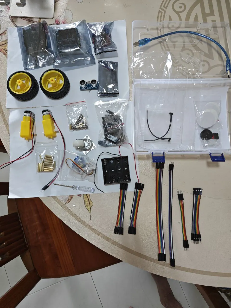 Delivery: Ordered on 18 Nov 2025, received goods on 03 Dec 2025. Which is about 2 weeks. Quality: Bought 220 units in total from Okystar. Considerably higher quality than average products purchased individually on the market. I have previously bought a few sets to test the products from other companies so I have a fair comparison. The chassis is thicker but also can see stress markings stemming from drilled holes. This has been observed to be consistent with other sets, not just one set. That said, I've also tested out various parts of the product including wires, screws, Arduino board, Sensor shield and L298N. I'm happy that the robot is fully capable of running and is compatible with online code editor. Service: On this order, I've made requests to cater to parts and components in the exact quantity, including soldering of wires to the motors using different connectors. Lynn and Okystar's staff fulfilled my requests very well and matched most of the parts successfully.